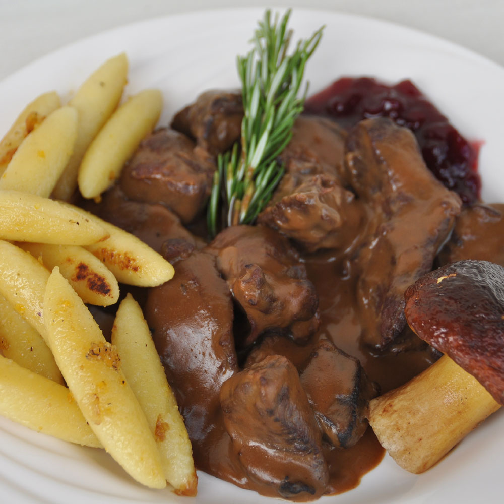 Hirschpfeffer, gekocht nach Hausart (für 2 Personen, 600g)